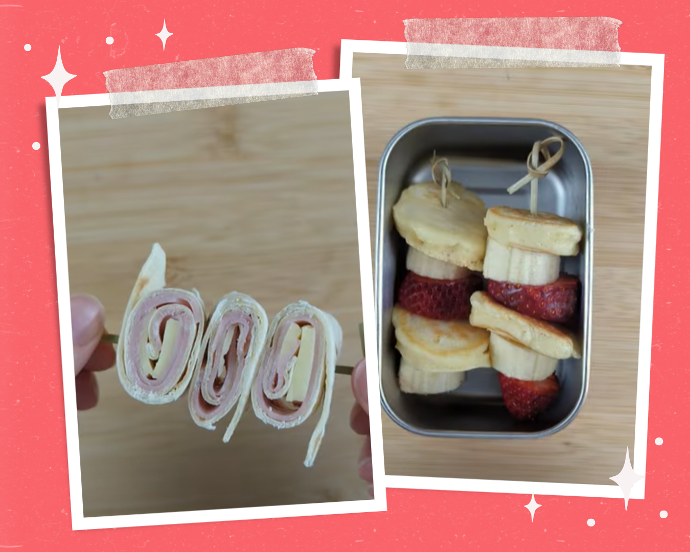 I don't know what it is about food on sticks but pop something on a skewer it immediately becomes more interesting to kids (and adults). You can buy reusable skewers or bamboo skewers that easily fit into lunch boxes or you can even reuse lollipop sticks as a skewer. Here is a video I created with 5 ideas for skewers but the options are endless!